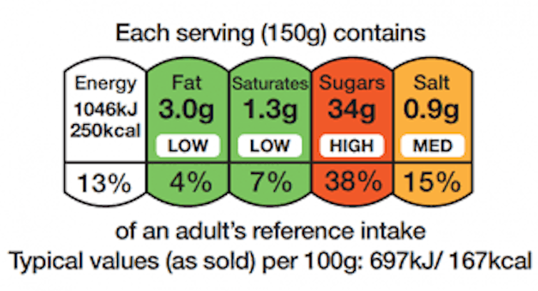 Contoh rambu lalu lintas untuk mengecek nutrisi makanan.