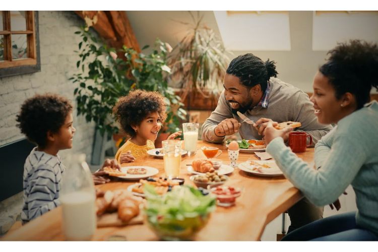 Journal of the American Dietetic Association menyebutkan makan bersama keluarga memberikan konsistensi, rutinitas dan kesempatan untuk komunikasi yang lebih baik, antara anak-anak dan orang tua mereka. Juga membantu anak-anak untuk belajar lebih banyak tentang gizi dan membangun kebiasaan makan yang cukup.