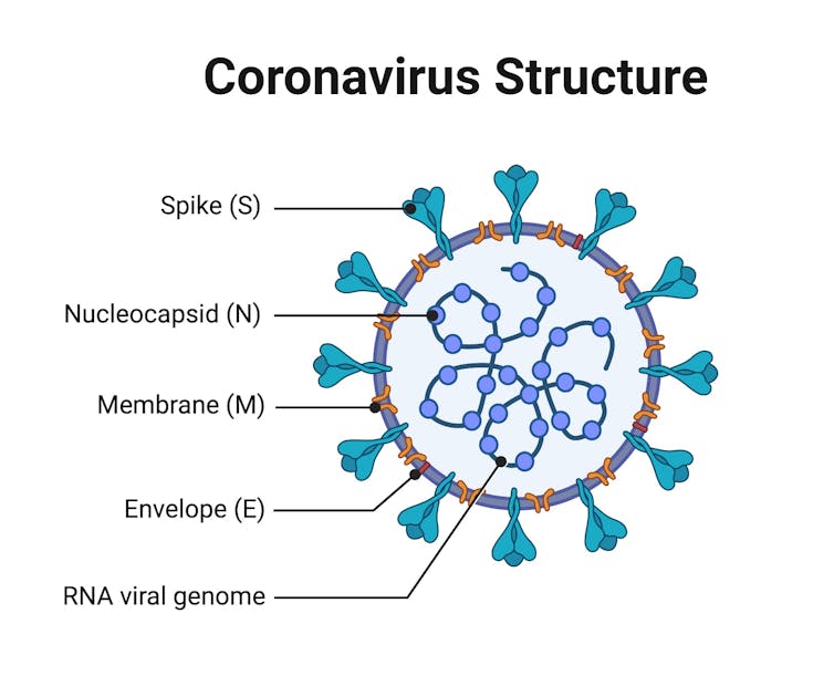 Visualisasi struktur virus corona/SARS-CoV-2. Biorender/biophysics