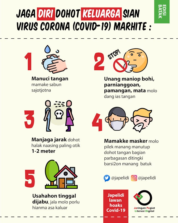 Kampanye cegah corona dalam 42 bahasa daerah yang dilakukan oleh Jaringan Pegiat Literasi Digital (Japelidi). Japelidi, CC BY